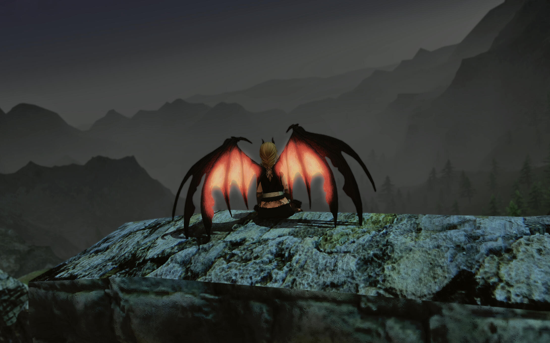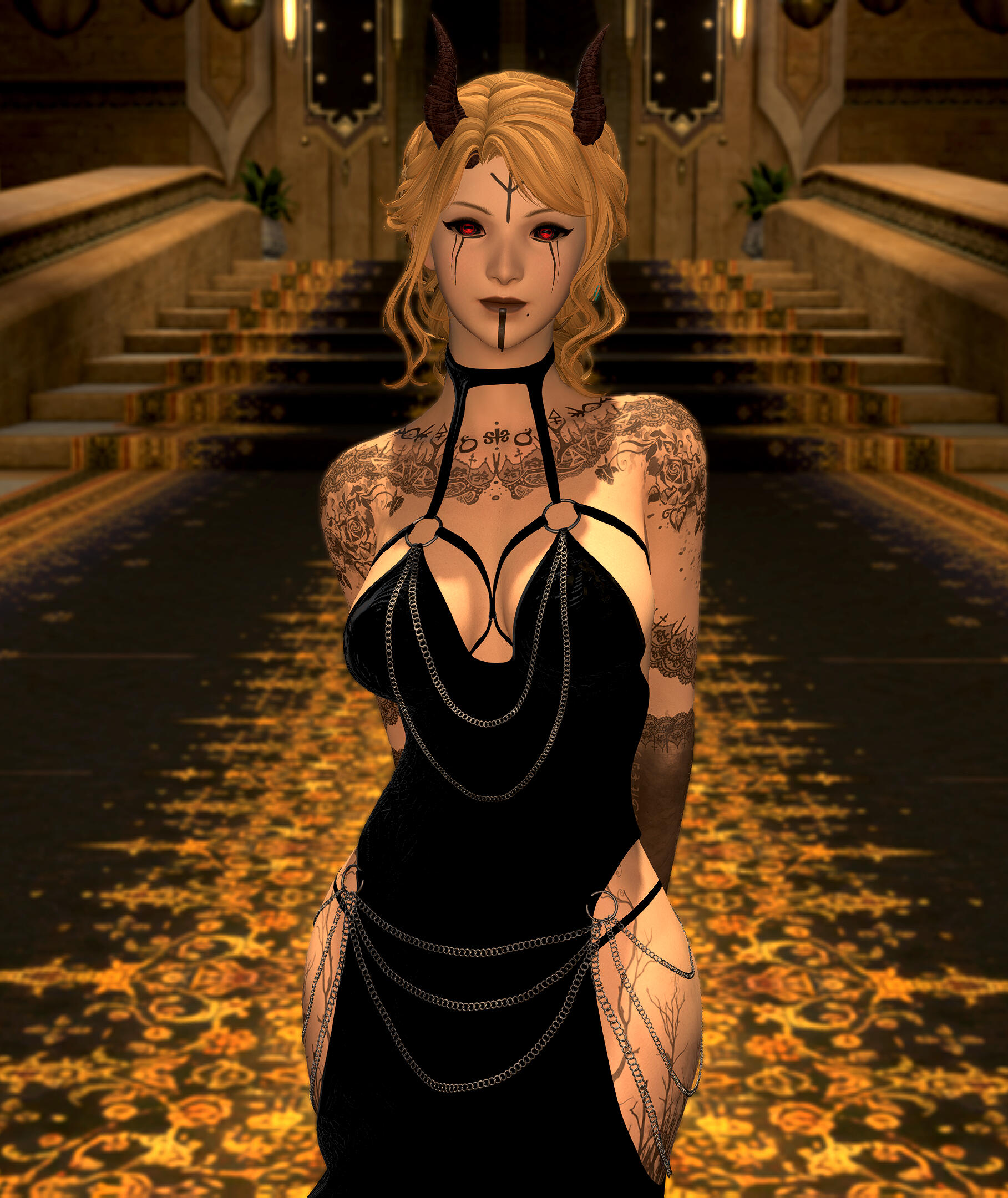 Dariah was born into a life destined to be unkind to her. Her mother - a wicked woman by the name of Seraphine - was a practitioner of dark magic and held a deep-seeded fascination with the ancient Mhachi art of Void Magic. To better aid herself in the rediscovery of this lost art, Seraphine made her home in the Yaefemi Saltmoors, close to the ruins of the fallen city of Mhach. On one excursion to the civilized areas of Eorzea, a tryst had with someone out of boredom landed her with child. Far from the maternal type, she had no desire for children...but she did see a potential use for her unborn spawn, and so she chose not to end the pregnancy, eventually giving birth to Dariah.Seraphine tended to Dariah is so much as to keep her alive, but no love was spared for the child. Dariah was a tool to be used, nothing more, and upon reaching the age of 9, it was decided that this tool's time had come. Seraphine spent months in preparation for a dark ritual she had pieced together from damaged tomes and scraps she managed to wrest from the ruins of Mhach, a ritual intended to summon a powerful denizen of the Void that she intended to serve as her servant and weapon. When the night of the ritual arrived, Dariah was called in, not to assist with the ritual, but to serve as a sacrifice to empower it.To start, the ritual proceeded as expected, however that soon changed. In spite of all of Seraphine's painstaking preparations, something went wrong. The ritual failed, and no entity from beyond the Veil was summoned, but even in failure, Seraphine managed to draw a huge amount of energy from the Void, and as the centerpiece of the ritual, Dariah's body was flooded by it. Young and defenseless as she was, Dariah had no chance of resisting the flood of Void energy that she was bathed in, and the corruption of it changed her forever. Her body was altered in a number of inhuman ways and even the very flow of her own, living aether was effected. Once the alterations were done, young Dariah was left with a body that was nearly indistinguishable from that of a true Voidsent.Furious over the failure of her ritual, Seraphine set to take her rage out on Dariah...and she would have, had the alterations the young girl had undergone not been as obvious as they were. Ever the opportunist, Seraphine chose instead to get something from her failed ritual and did not kill Dariah, thinking instead that the girl's new condition might yet prove useful.Years passed and Dariah grew into a woman, long since having forgotten what it had been like to have a normal body. Her mother taught her to use magic, not to empower her, but just enough that Dariah was able to protect herself from the many dangerous creatures that called the Saltmoor home. In spite of her mother's begrudged acceptance of her after the ritual, Dariah was never treated as a daughter, she remained a tool, a servant...a slave.One fateful day, Dariah was tasked with assisting Seraphine with mixing a number of alchemical concoctions the older woman intended to use in her magical research. Dariah did as she was bidden, mixing the potions as she had done many times before. This time, however, as she turned to get the next ingredient from a shelf, Dariah's behooved feet slipped on the smooth, wooden floor and she fell, accidentally knocking over the alchemical materials she had been working with, ruining them. Seraphine flew into a rage, savagely beating Dariah for the mistake. It was not something Dariah was unaccustomed to - her mother often beat her - but something happened that time that never had before. Something hidden deep in Dariah's mind woke up; all sense of the world around her disappeared and all she heard was a voice that spoke in her mind. A voice that said only one word: No. After that word echoed through her mind, consciousness abandoned her.Some time later, Dariah awoke. The first thing that caught her attention was that she was not laying on the ground as she had expected, but was sitting upright, though still staring up at the ceiling. She looked down to take in her surroundings and found she was knelt down on the ground, straddling the dead body of her mother. She only knew it was her mother from the clothes it wore as where her head should have been was nothing but a mangled pile of gore. Dariah's body was covered in blood and in her hand was a heavily damaged iron alembic thickly coated in blood and bits of shattered bone. The only obvious answer to the situation was that Dariah had killed her mother, but she had no memory of the act...just of that voice in her mind.A few days passed, but it was quickly becoming apparent that it would not be feasible for Dariah to remain in the saltmoor alone. She knew nothing of the outside world, having spent the whole of her life in the moor under her mother's cruel thumb. Seraphine had taken infrequent trips out of the moor, and Dariah knew the direction she'd traveled in to do so, so she gathered up what resources she figured she would need for an extended journey, set the only home she'd ever known ablaze and made her way out of Yaefem.