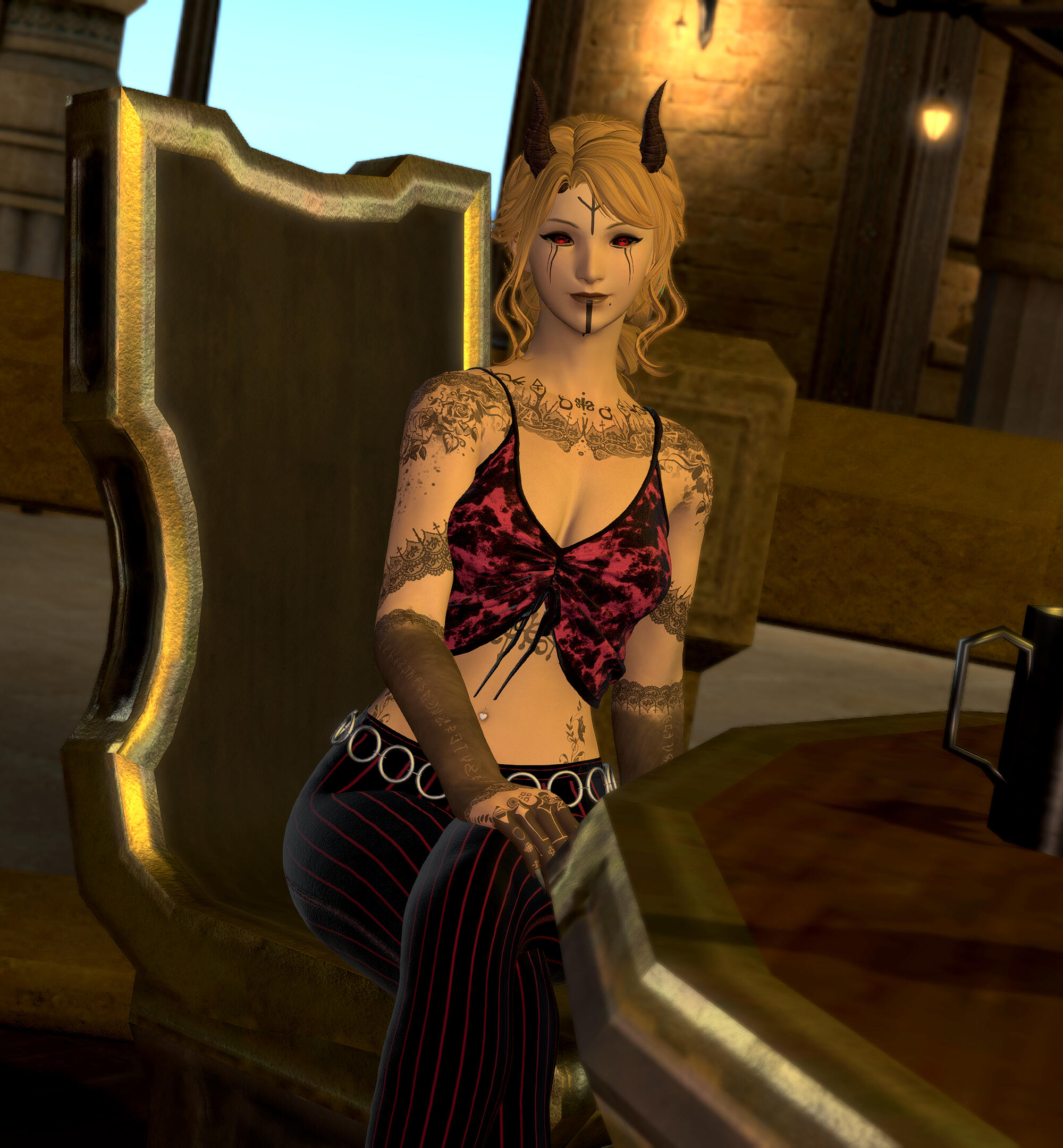 By clicking the link below and proceeding to the character bio, you acknowledge that none of the content nor any of the images contained therein are in any way representative of the Square-Enix corporation, the Final Fantasy XIV game, nor anything else either now or in the future that is or will be officially approved by the above mentioned entities.All images contained on this site are creative interpretations designed by me and are only representative of the original character described herein. All images are provided for entertainment purposes only and NO PERMISSIONS are provided to any third party for use of any kind nor for further dissemination of said images for any reason at all either by direct transfer of the image files or by providing direct links to the files posted on this website. Likewise, some of the content of this page may be inappropriate for anyone under the age of 18. Persons under the age of 18 are strictly forbidden from viewing anything on this character bio as a result.Furthermore, by clicking the link below you agree not to describe anything witnessed therein nor will you provide links to the content to anyone else for any reason unless something displayed is a violation of state or federal law.